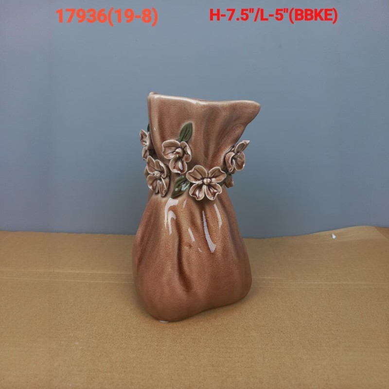 Elevate your interior styling with this warm, earth-toned ceramic vase. Its distinctive “pouch” design symbolizes prosperity and style, making it a thoughtful gift or a stunning addition to your own collection.