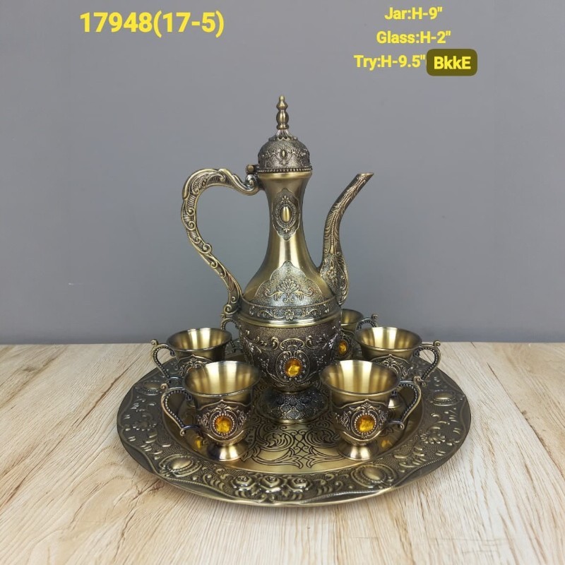 Serve your guests in timeless elegance with this beautifully crafted vintage-style tea and coffee serving set. Featuring an ornately embossed design with intricate floral patterns and antique detailing, this set adds a royal and traditional touch to any gathering, dining table, or décor display.