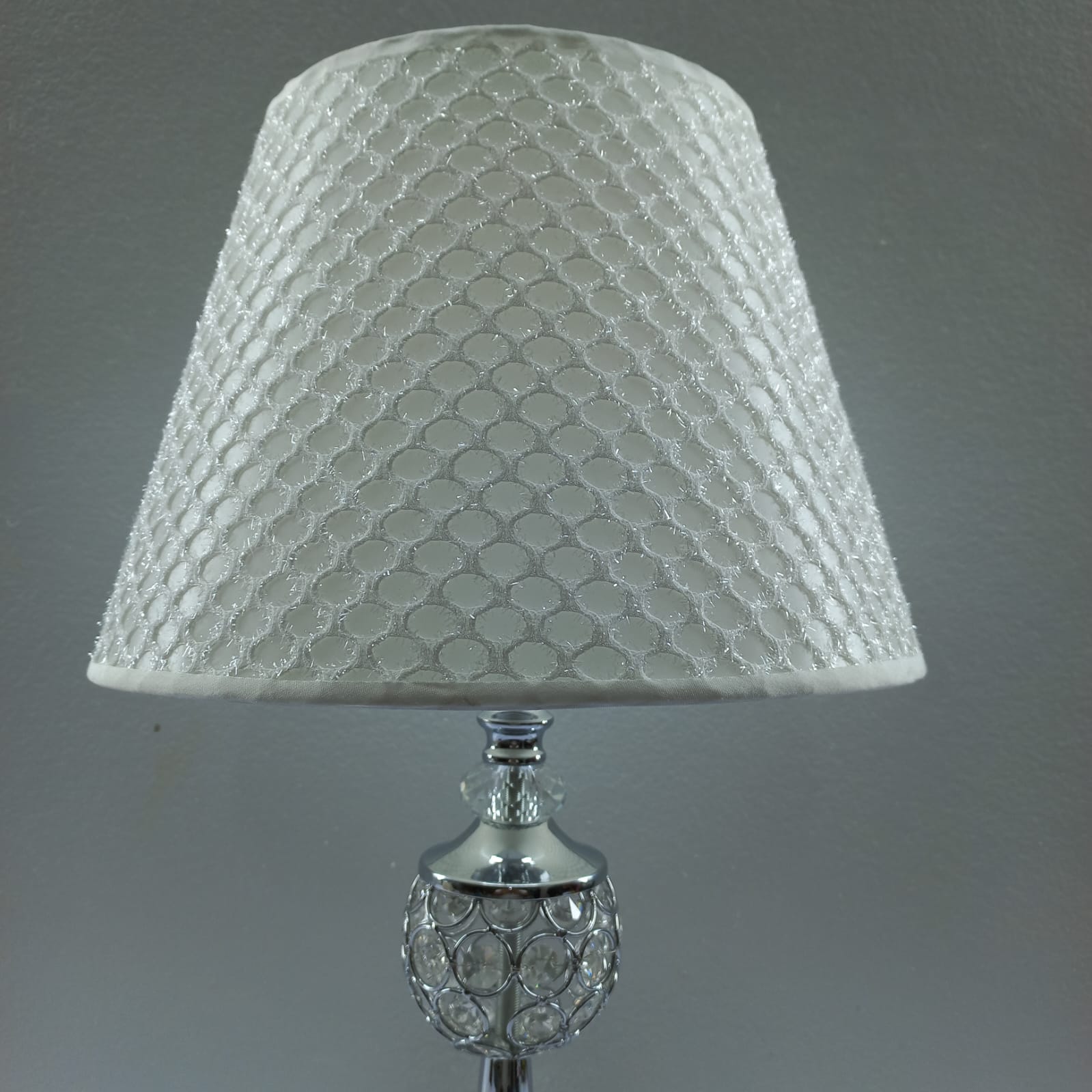 Intricate Crystal Base: Features a silver-finished mesh frame embedded with high-quality crystals for a brilliant, refracted light effect.