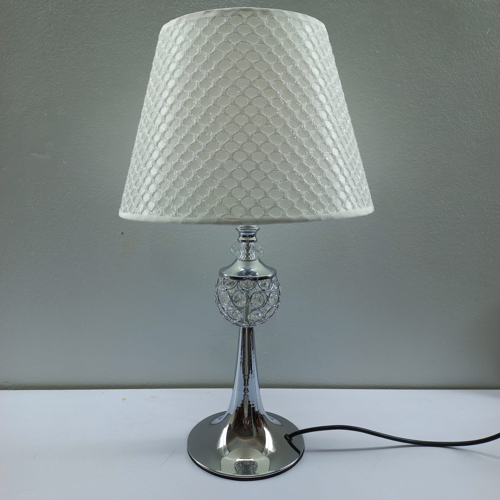 Transform your living space with this exquisite decorative table lamp, designed to blend modern elegance with ambient warmth. Featuring a unique lattice-patterned fabric shade and a striking crystal-style glowing orb at its center, this lamp creates a captivating light display on your walls and surfaces.