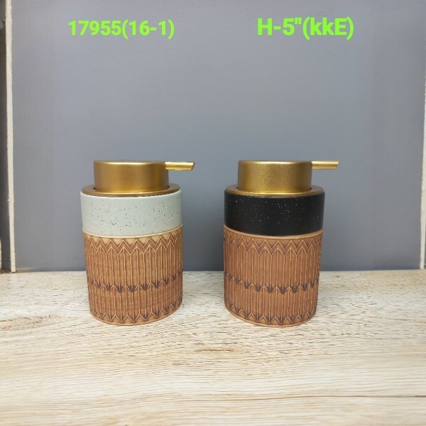 | Soap Dispenser | 7″ Height (18 cm) | Ceramic with Gold-Finish Pump |