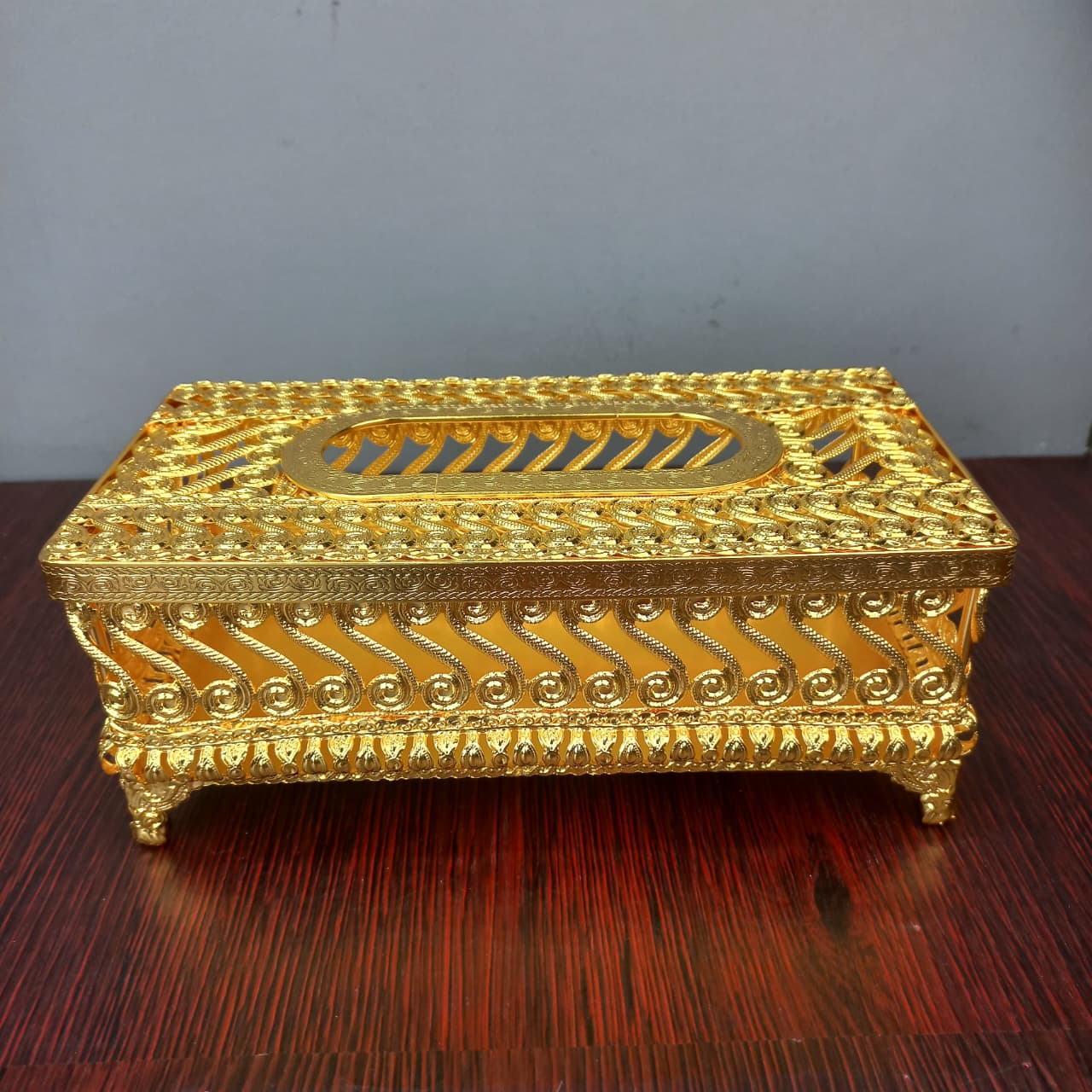 Sturdy & Elevated: Equipped with ornate corner legs that protect your surfaces and keep the box securely in place.
