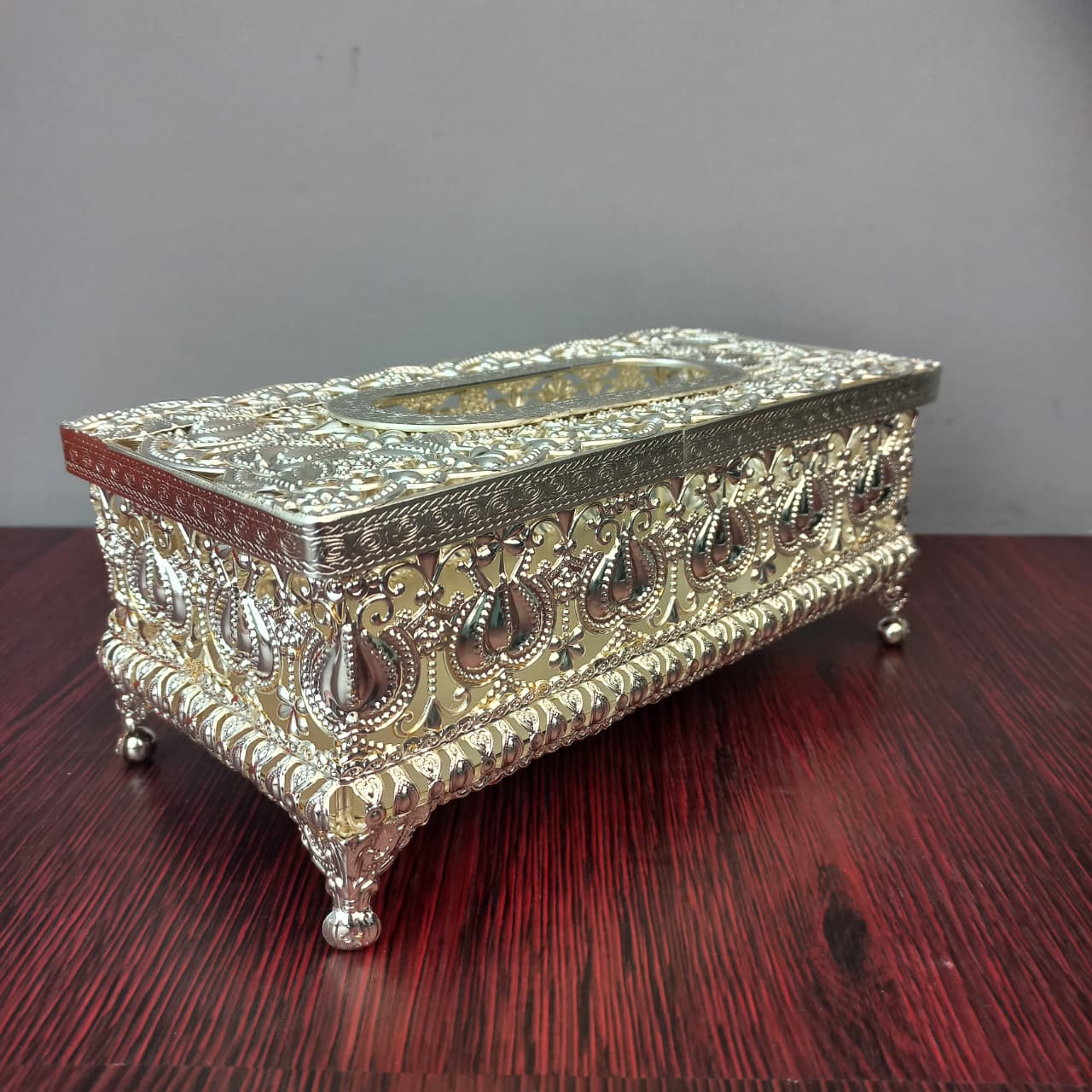 Designed for those who appreciate the finer details, this holder features a hinged or removable top for easy refills and sits elegantly on four sculpted decorative feet. Whether placed in a formal dining room, a master suite, or a professional executive office, this tissue box serves as a statement of refined taste and luxury lifestyle.