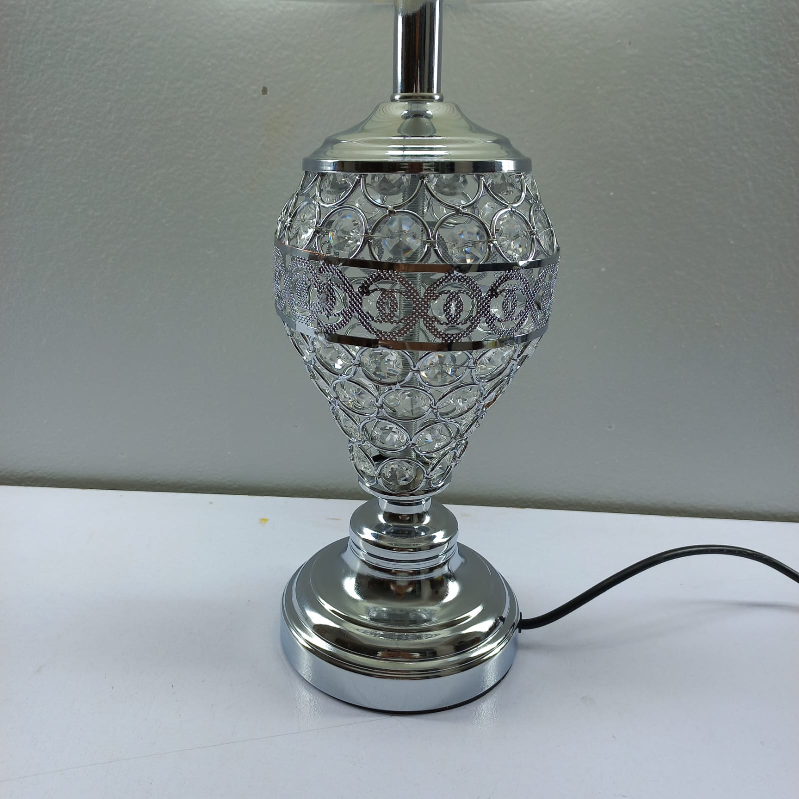 Intricate Crystal Base: The vase-shaped base is adorned with high-quality crystal beads and silver-toned accents, reflecting light beautifully even when the lamp is off.